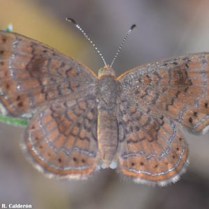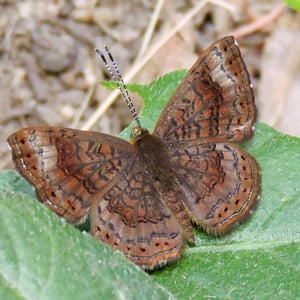Calephelis nemesis (fatal metalmark or dusky metalmark) is a butterfly in the family Riodinidae. It is found in the southern part of the United States and Mexico. Its habitats include chaparral canyons near rivers in arid areas, roads, and washes. The wingspan is 20–25 mm. The upperside of the wings is brown with somewhat darker median bands. The fringes are checkered. Adults feed on flower nectar. The larvae feed on Encelia californica, Baccharis glutinosa, Clematis drummondii and Clematis henryi.