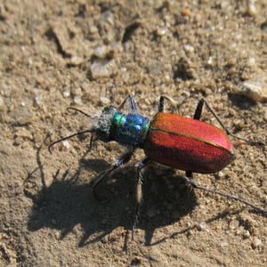 Cicindela scutellaris, the festive tiger beetle, is a species of flashy tiger beetle in the family Carabidae. It is found in North America.