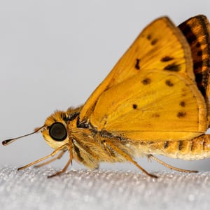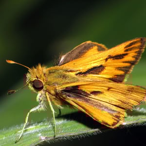 Fiery Skippers, along with all other species of skippers and skipperlings, can hold their wings in a "triangle" shape. The forewings are held upright, and the hindwings are folded flat. This position is thought to better absorb the sun's rays. Fiery Skippers have been described as “rapid flyers with darting movements” which often make them difficult to both observe and catch. These skippers are often found in urban settings and are known to hold a unique relationship with turfgrass such as Bermuda Grass (Cynodon dactylon). In Hawaii, studies looking at the diet of Fiery Skipper larvae found individuals to grow most rapidly when fed a diet of “FB-137” Bermuda Grass. Given the wide range of these skippers, it is suggested the species is well adapted and will readily disperse given ample resources.
