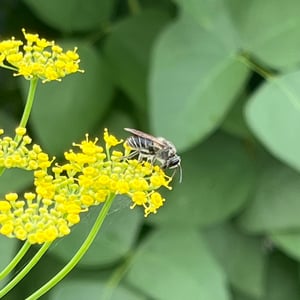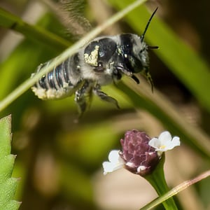 Megachile mendica, commonly known as the "mendicant leafcutter bee," is a species of solitary bee belonging to the Megachilidae family. These bees are medium-sized, with a body length ranging from 10 to 15 mm. They are known for their distinctive behavior of cutting circular pieces of leaves to construct their nests, which are typically found in pre-existing cavities or hollow stems. Megachile mendica is an important pollinator, particularly for plants in the Asteraceae family.