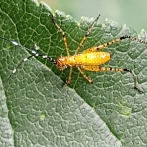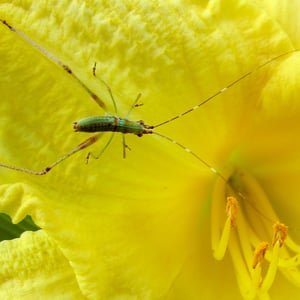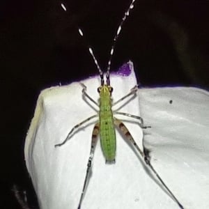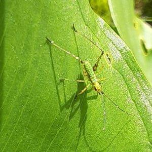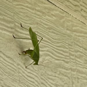 Scudderia furcata, commonly known as the fork-tailed bush katydid, is a species of insect belonging to the family Tettigoniidae. It is primarily found in North America, particularly in the eastern and central regions. This insect is known for its distinctive appearance, with a long, slender body and wings that resemble leaves. The fork-tailed bush katydid is a nocturnal insect that feeds on a variety of plant materials and produces a loud, high-pitched mating call.