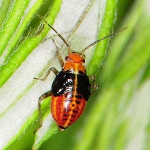 This species has a wide host range, but shows strong preference for plants in the mint and composite families (Lamiaceae and Asteraceae). Various herbaceous perennials and shrubs in these families are favored for reproduction and account for the majority of damage observed in the landscape and garden, although and vegetables are also sometimes damaged. Both nymphs and adults feed on leaves creating the water-soaked patches of leaf tissues that may later dry up or fall out to produce tiny holes.
