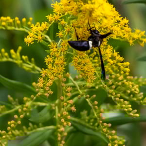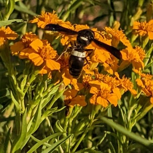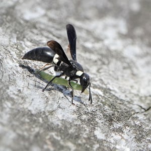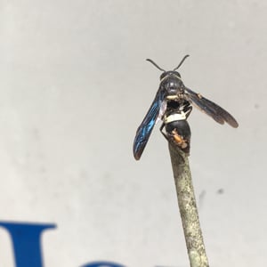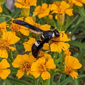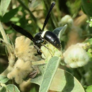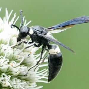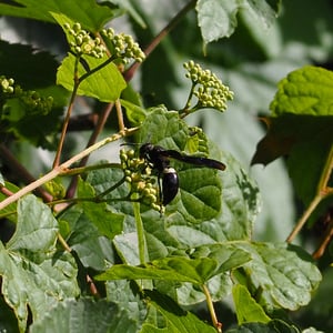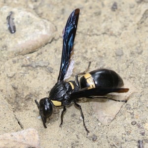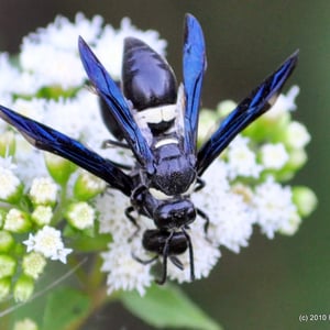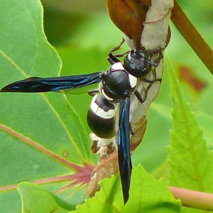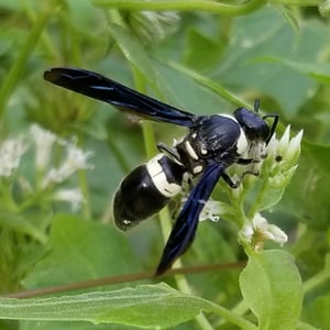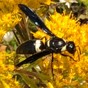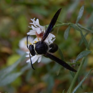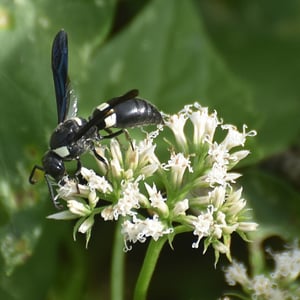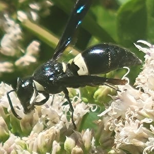 Monobia quadridens, also known as the four-toothed mason wasp, is a species of solitary potter wasp found in North America. It grows to a wingspan of 18 mm, and feeds on small caterpillars and pollen. There are two generations per year, with one generation overwintering as pupae.