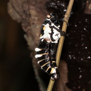 Gaeana is a small insect belonging to the order Hemiptera. It is characterized by its elongated body, measuring around 5 millimeters in length, and its vibrant green coloration. Gaeana is commonly found in tropical regions, particularly in dense vegetation and forests. It feeds on plant sap using its piercing-sucking mouthparts and plays a role in pollination.