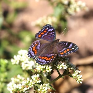 The adults feed on nectar and have a year-round flight period. Regional timing of the onset of dry and wet seasons determines the flight times of the respective wet and dry forms in the nominate subspecies, Precis octavia octavia, which is prevalent in West Africa through Central to north-eastern Africa. The dry season form is expressed as the winter form in the southern subspecies Precis octavia sesame which flies from March to September. The wet season form is expressed in the south as the summer form flying from October to March. The two seasonal forms are not only different in appearance, but also display different behaviour: In the nominate subspecies, Precis octavia octavia, the dry season form tends to fly less actively than the more territorial wet season form, and is often quiescent in discreet hiding places even under eaves or indoors. It tends to wander towards the forest zone where it may breed seasonally rather than year-round. Amongst the southern subspecies, Precis octavius sesamus, the males of the summer form display conspicuous hilltopping, and show both territorial and perching behavior. They fly between one and two meters off the ground with a medium-fast "flap-flap-glide" motion. They are often found in grasslands. The male winter form rarely hilltops, has a random flight pattern, and is often found near forests. In cold weather, the winter form hibernates in holes or under overhanging rocks. Up to 35 individuals may gather together in these places. The summer and winter form have been seen mating with each other.