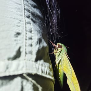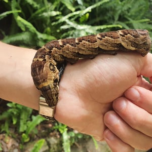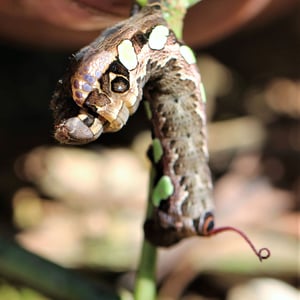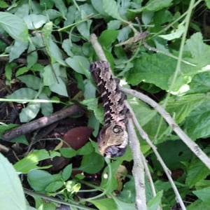 Female adults lay their eggs on the leaves of the host plant, mainly grapes (Vitis), and vine (Cissus). Caterpillars hatch and start eating, resembling the head of a snake. When they are ready to pupate, they climb down their host plant and burrow underground. When the pupa is ready, it wiggles to the surface just prior to eclosion. The newly emerged adults then climb on a plant or some other surface, and pump fluid into their wings to extend them. Females emit pheromones at night, and males fly into the wind to pick up and track the pheromone odor plume. Adults probably feed on flower nectar.