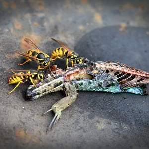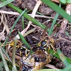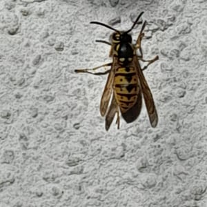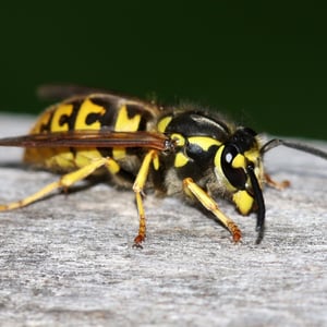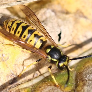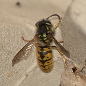 Vespula germanica, the European wasp, German wasp, or German yellowjacket, is a species of wasp found in much of the Northern Hemisphere, native to Europe, Northern Africa, and temperate Asia. It has spread and become well-established in many other places, including North America, South America (Argentina and Chile), Australia, South Africa, and New Zealand. German wasps are part of the family Vespidae and are sometimes mistakenly referred to as paper wasps because they build grey paper nests, although strictly speaking, paper wasps are part of the subfamily Polistinae. In North America, they are also known as yellowjackets.