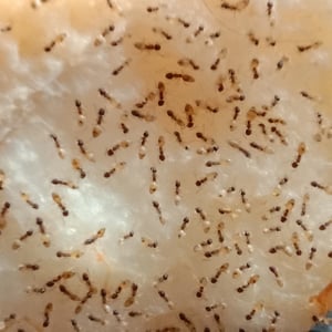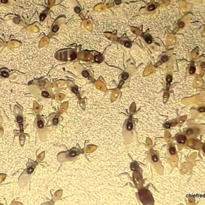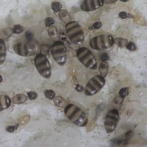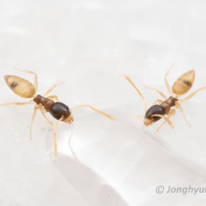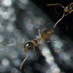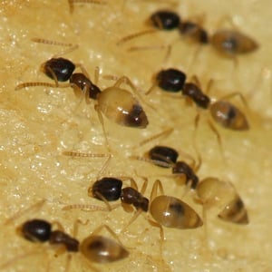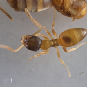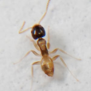 Tapinoma melanocephalum is a species of ant that goes by the common name ghost ant. They are recognised by their dark head and pale or translucent legs and gaster (abdomen). This colouring makes this tiny ant seem even smaller.