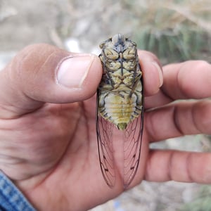 Quesada gigas, commonly known as the Giant Mesquite Bug, is a large insect found in the southwestern United States and Mexico. It belongs to the family Coreidae and can grow up to 2 inches in length. The bug has a distinct black and red coloration, with a flattened body and long antennae. It feeds primarily on the seeds of mesquite trees and is known for its loud buzzing sound when disturbed.