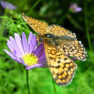 The Glanville fritillary (Melitaea cinxia) is a butterfly of the family Nymphalidae. It is named for the naturalist who discovered it and the checkerboard pattern on its wings. These butterflies live in almost all of Europe, especially Finland, and in parts of northwest Africa. They are absent from the far north of Europe and parts of the Iberian Peninsula. To the east they are found across the Palearctic (in Turkey, Russia, northern Kazakhstan and Mongolia). It has been discovered that this butterfly only mates one time in June or July and lays its eggs. It does not provide any protection to these eggs or care for the offspring. As adults, the Glanville fritillaries are short-lived; they spend most of their lives as caterpillars. As caterpillars, Glanville fritillaries enter a stage of diapause, which is a period of suspended development, during the winter time. The spiked speedwell and ribwort plantain are the Glanville fritillary's preferred plants to lay eggs and to eat as larvae. Female butterflies will show a preference for one plant species over the other when deciding where to lay their eggs, but the caterpillars have no preference once they hatch. After entering the adult phase the fritillaries feed on nectar of the spiked speedwell and ribwort plantain, among others. This species of butterfly is at risk of population decline because it is not a migratory species. Though widespread, populations in Finland are at risk because they are not able to travel great distances as easily as other species, such as monarchs, if their environment should suddenly become unsuitable.