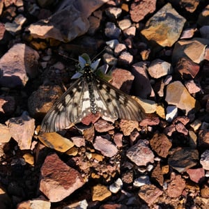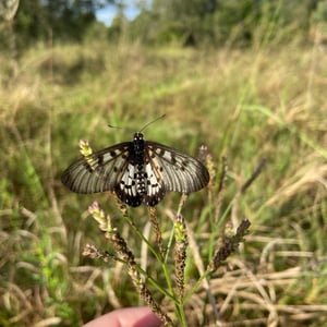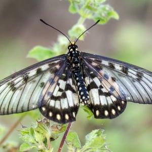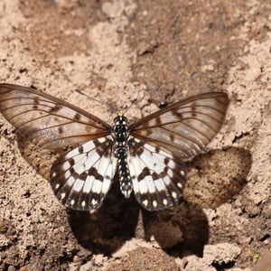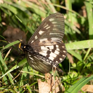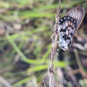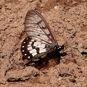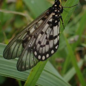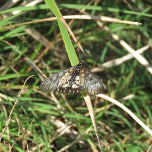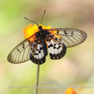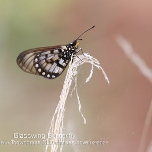 Acraea andromacha, the glasswing or small greasy, is a butterfly of the family Nymphalidae. It is found in Australia, New Guinea and surrounding islands. See the subspecies section for more details. The wingspan is about 60 mm. The larvae feed on Adenia heterophylla, Passiflora cinnabarina, Passiflora herbertiana, Passiflora foetida, Passiflora mollissima, Passiflora suberosa, Passiflora subpeltata, Hybanthus aurantiacus and Hybanthus enneaspermus.