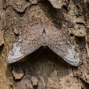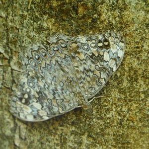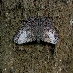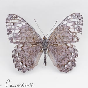 Hamadryas glauconome is a species of butterfly belonging to the family Nymphalidae. It is commonly known as the Glauconome or the Glauconome Leafwing. This insect is found in the tropical rainforests of Central and South America. It is characterized by its large wingspan, ranging from 7 to 9 centimeters, and its striking coloration, with dark brown wings and vibrant blue-green patches.