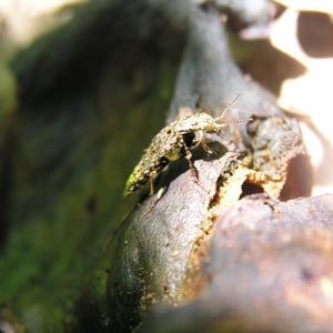 Ontholestes cingulatus, commonly known as the carrion beetle, is a species of insect belonging to the family Staphylinidae. It is typically found in North America and Europe. These beetles are known for their scavenging behavior, feeding on decaying animal matter, and playing an important role in the decomposition process. They have a distinctive black and orange coloration, with a cylindrical body shape and short elytra.