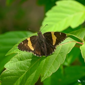 Golden banded-skippers have a strange mix of patrolling and perching in their courtship. Females lay their eggs on the underside of host plant leaves in clusters of two to nine in a row. The egg is yellow but turns tan just before hatching. The larva makes a nest out of leaves, attaching them together with silk. It comes out of its nest at night to feed. The larva is pine green with small yellow spots and has a yellow lateral stripe. The black head has two facial orange spots and a reddish collar. The pupa is dark brown with a greenish hue. It overwinters as a pupa. The golden banded-skipper has one to three broods per year.