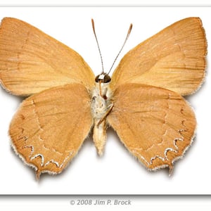 Habrodais grunus, the golden hairstreak, is a butterfly in the family Lycaenidae. It is found in North America in southern Arizona, Oregon, California and Mexico. The habitat consists of oak woodland, canyons and mountain ridges. The wingspan is 25–32 mm. It has a short tail on the hindwing. The upperside of the males is dark brown with a yellow tinge in the cell area of the forewing. Females are less dark. The underside is yellow brown with a narrow, dark postmarginal line. The hindwings have thin gold crescents at the margin, the last two of which are iridescent. Adults are on wing from June to September in one generation per year. They feed on moisture from various sources and possibly also feed on aphid honeydew or other exudates. The larvae feed on the young leaves of Chrysolepis chrysophylla, Quercus chrysolepis, Quercus vaccinifolia and Lithocarpus densiflorus.