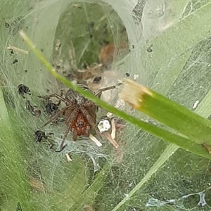Agelena is a genus of agelenid spiders first described by Charles Athanase Walckenaer in 1805. Sometimes referred to as Eurasian grass spiders, they trap their prey by weaving entangling non-sticky funnel webs. They are limited to the Old world, occurring from Africa to Japan. Many species have been moved to other genera, particularly to Allagelena, Benoitia and Mistaria. Agelena limbata is one of the most common web-weaving spider species in Japan.