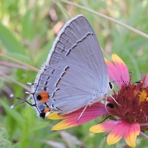 The gray hairstreak (Strymon melinus) is also called the bean lycaenid or cotton square borer. It is a member of the Lycaenidae family, known as the gossamer-winged butterflies and the second-largest family of butterflies. It is one of the most common hairstreaks in North America, ranging over nearly the entire continent. It also occurs throughout Central America and in northern South America.