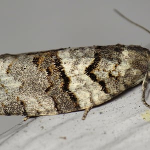 Syndemis afflictana, the gray leafroller, dead leaf roller or black-and-gray banded leafroller, is a species of moth of the family Tortricidae. It is found in North America, where it has been recorded from southern Canada and the northern United States. In the west, the range extends south in the mountains to California. The species is also present in Florida. The habitat consists of coniferous forests. The wingspan is 18–23 mm. The basal half of the forewings is silvery, while the distal half is brownish-grey. Adults are on wing in May and June in the north and from April to June in the southern part of the range. There is one generation per year. The larvae feed on various trees, including Pseudotsuga menziesii, Abies lasiocarpa, Abies balsamea, Alnus, Malus, Betula papyrifera, Acer, Picea, Larix laricina and Salix species. The larvae have a yellowish-green body and green head. They reach a length of about 20 mm when full-grown. They can be found from May to early June and again from late July to October. The species overwinters in the larval stage.