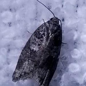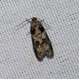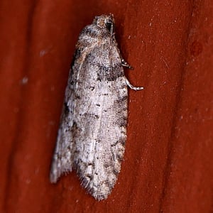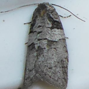 Decodes basiplagana is a moth of the family Tortricidae. It is widespread in North America, including Illinois, Massachusetts, Minnesota, New Jersey, Oklahoma, Ontario, Tennessee and Wisconsin The length of the forewings is 8.1–9 mm. Adults have gray forewings with a strongly arched costa. The forewing pattern varies greatly. While some specimens have well defined dark gray and black fasciate markings, others are unmarked. The larvae feed on Quercus lobata.