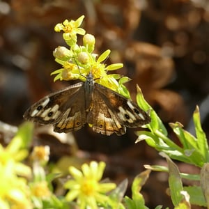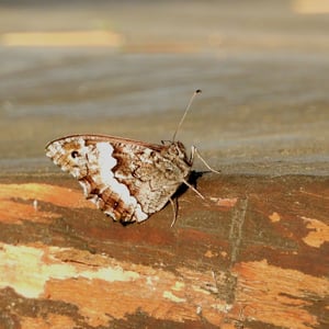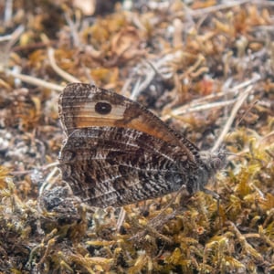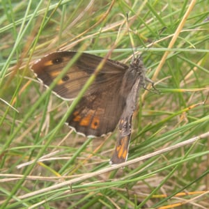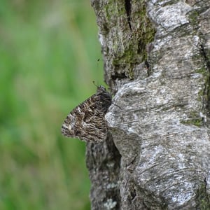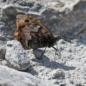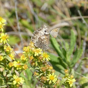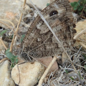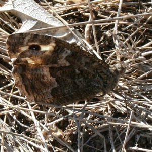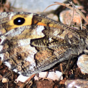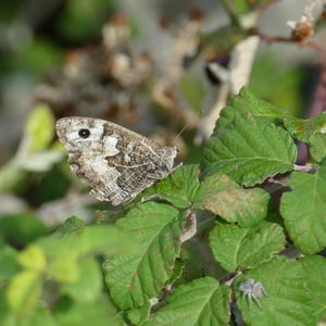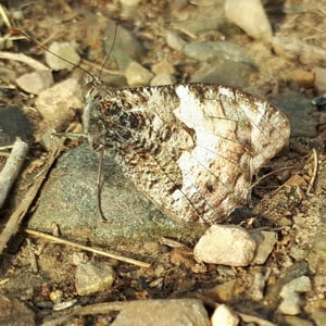 The grayling or rock grayling (Hipparchia semele) is a species in the brush-footed butterfly family Nymphalidae. Although found all over Europe, the grayling mostly inhabits coastal areas, with inland populations declining significantly in recent years. The grayling lives in dry and warm habitats with easy access to the sun, which helps them with body temperature regulation. A grayling goes through four stages in its life cycle. The eggs hatch around August, and larvae grow in four instars from August to the following June. By June, the larvae begin to pupate by spinning a silk cocoon below the surface of the ground. The adult grayling emerges around August. The grayling migrates in small groups of two or three butterflies throughout most of August, typically moving southeast. H. semele engages in cryptic coloring, with their tan and brown colored wings helping them camouflage into their surroundings. The grayling exposes the eyespots on its wings when it believes to have been detected by a predator, but generally keeps them hidden to avoid being seen. Male butterflies are territorial, and engage in flight performances to determine who settles in the best oviposition site. Additionally, the grayling regulates its body temperature by orienting its body and posture to adjust to the heat from the sun. Grayling populations have recently begun to decline, and while it is not globally endangered, the species is now considered a priority for conservation efforts in the United Kingdom.