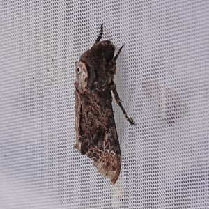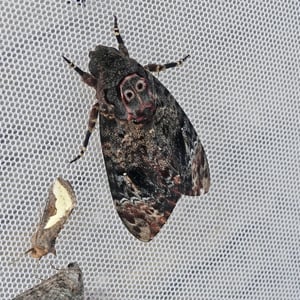 The moth rests with the wings folded with the abdomen completely covered. When disturbed it raises its body from the surface on which it is sitting and partially opens and raises its wings and emits a squealing note. Notable predators are mostly parasitoids such as Amblyjoppa cognatoria, Quandrus pepsoides and Drino atropivora.