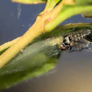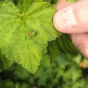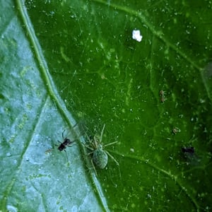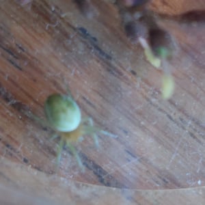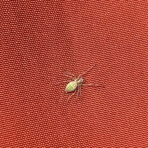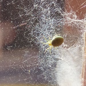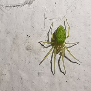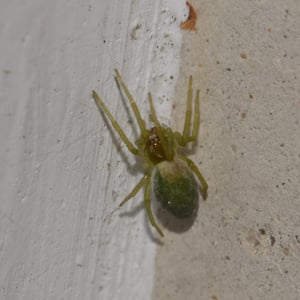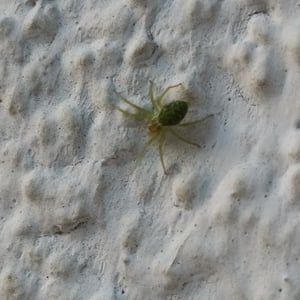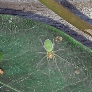Nigma walckenaeri is a green cribellate spider up to five millimetres long, the largest of the family Dictynidae. While most of the body is a somewhat yellowish, the abdomen is a shining green, which makes it rather distinct and hard to confuse with other species. The green color makes it almost invisible. Males have an elevated head region. From August to October these spiders can be found in gardens or on walls - often on big leaves such as lilac or feral grapevine. The spider catches insects, sometimes larger than itself, in its web, which it builds on the surface of leaves. The female hides the 7-millimetre long egg sac on a place distant from its retreat. The spider has a palearctic distribution. In Great Britain, until 1993, it was only found in London and the Home Counties. It may originally have been imported into Kew Gardens.