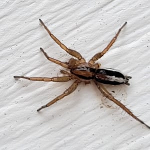 Ground spiders hunt by active foraging, chasing down and subduing individual prey items. They are adapted to hunting large and potentially dangerous prey, including other spiders, which they subdue by using their silk. When hunting, ground spiders produce thick, gluey silk from their enlarged spinnerets and attempt to use it to entangle their prey in swathing attacks, often applying their webbing to their prey's legs and mouths. By immobilizing potential prey in this manner, ground spiders can subdue proportionally large creatures while reducing risk of injury to themselves from their prey's attempts to fight back.