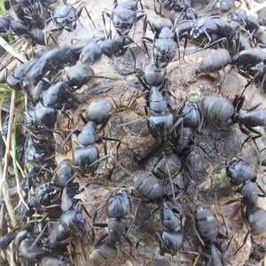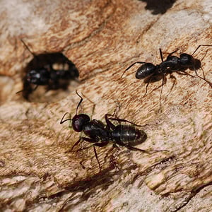 Camponotus vagus is a species of ant commonly known as the wandering carpenter ant. It is characterized by its large size, ranging from 6 to 13 millimeters in length. These ants are typically black or dark brown in color and have a smooth and shiny exoskeleton. They are known for their nomadic behavior, often establishing temporary nests in various locations before moving on to new sites.