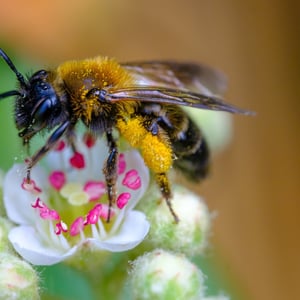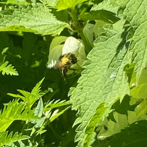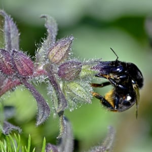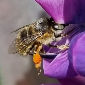 Anthophora plumipes, commonly known as the hairy-footed flower bee, is a species of solitary bee found in Europe and parts of Asia. It is characterized by its robust body, black coloration, and dense covering of yellowish hairs on its legs and thorax. These bees are important pollinators, particularly for plants in the Asteraceae family, and can often be seen foraging on a variety of flowers during the spring and summer months.