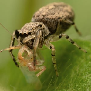 Zygoballus rufipes, commonly called the hammerjawed jumper, is a species of jumping spider which occurs in the United States, Canada, and Central America. Adult females are 4.3 to 6 mm in body length, while males are 3 to 4 mm.