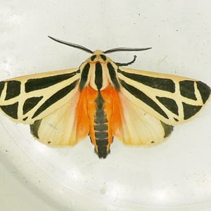 Apantesis phalerata, the harnessed tiger moth, is a moth of the family Erebidae. The species was first described by Thaddeus William Harris in 1841. It is found in North America from Ontario, Quebec and Maine to Florida, west to Texas, north to South Dakota. The wingspan is 30–42 mm (1.2–1.7 in). The moths fly from April to September depending on the location. The larvae feed on Trifolium, Spartina, Taraxacum, and Plantago species, as well as other low-growing plants. On top of all of this, its caterpillar hosts include clover, corn, dandelion, plantain, and other plants. As a group, tiger moth caterpillars feed on a wide range of grasses, garden crops, shrubs, and trees. Like all butterflies and moths, harnessed tiger moths undergo a complete metamorphosis, with four life cycle stages: egg, larva (caterpillar), pupa, and adult. The cocoon is constructed mostly from larval hairs, making for a rather fuzzy pupal case. Many tiger moths wear bright colors, which may serve to warn predators that they'd be an unpalatable meal. However, the nocturnal tiger moths are also hunted by bats, which find their prey using echolocation rather than sight.