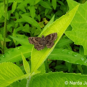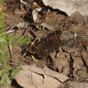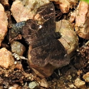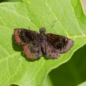 Staphylus hayhurstii, the Hayhurst's scallopwing, is a butterfly of the family Hesperiidae. It is found in the United States from eastern Nebraska east across the southern Midwest to southern Pennsylvania and south to Florida, the Gulf states and central Texas. The wingspan is 25–32 mm. There are two generations with adults on wing from May to August in most of its range, from April to September in Mississippi and from February to December in Florida. The larvae feed on Chenopodium, and occasionally Alternanthera species. Adults feed on nectar from marigold, knotweed, spearmint, wild marjoram, cucumber, dogbane, white sweet clover, and white clover.