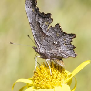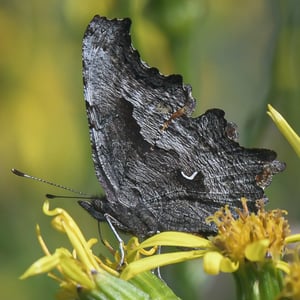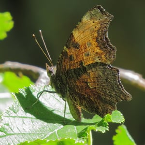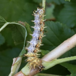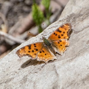 The hoary comma (Polygonia gracilis) is a species of butterfly, common in boreal North America from Alaska, across southern Canada to New England and the Maritime Provinces and south to New Mexico from the Rocky Mountains to the Pacific Ocean. The wings have a distinctive ragged edge. Adult butterflies feed on tree sap and nectar from sweet everlasting (Gnaphalium) as well as other flowers. Caterpillars feed on shrub leaves including currant (Ribes), western azalea (Rhododendron occidentale) and mock azalea (Rhododendron menziesii). The species survives the winter in the adult stage in diapause and mate and lay eggs in the spring. Butterflies emerge from their chrysalids in midsummer.
