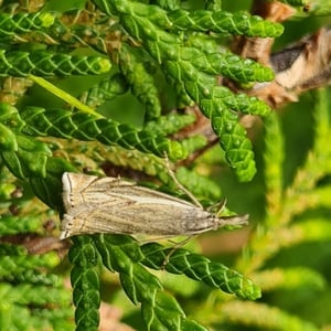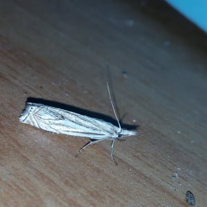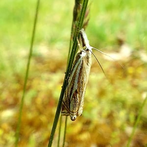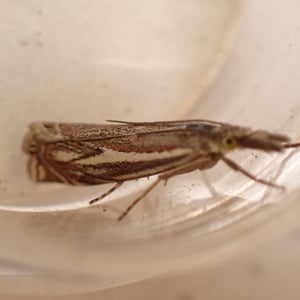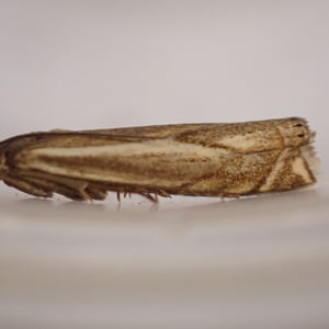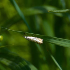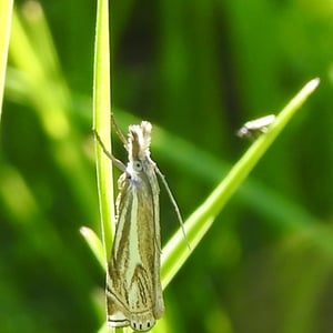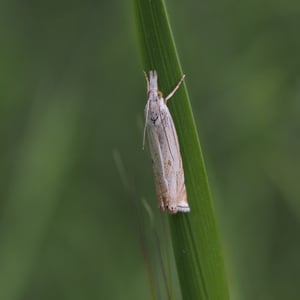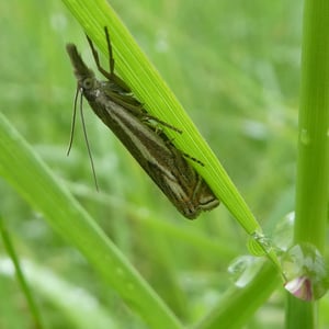 Crambus lathoniellus is a small moth belonging to the family Crambidae. It has a wingspan of about 15-20 mm and is commonly found in grassy habitats across Europe and North America. The adult moth has a pale brown coloration with distinct dark markings on its wings. The larvae of Crambus lathoniellus feed on grasses and can be considered a minor agricultural pest.