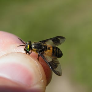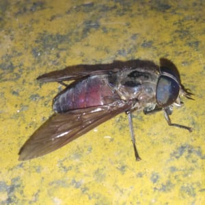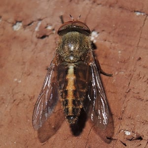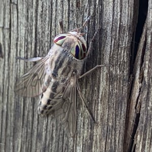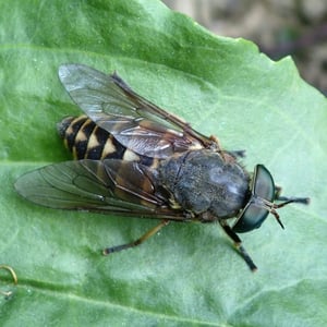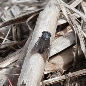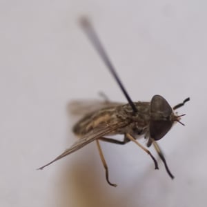 Tabanidae, commonly known as horse flies or deer flies, are a family of large, blood-sucking insects. They are known for their painful bites, which they use to feed on the blood of mammals, including horses, cattle, and humans. Tabanidae have large, compound eyes and strong mouthparts adapted for piercing the skin. They are often found near bodies of water and are most active during the day.