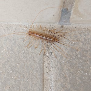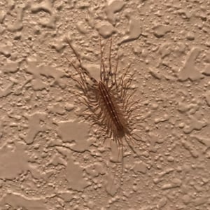 Scutigera coleoptrata, also known as the house centipede, is a species of centipede that is typically yellowish-grey and has up to 15 pairs of long legs. Originating in the Mediterranean region, it has spread to other parts of the world, where it can live in human homes. It is an insectivore; it kills and eats other arthropods, such as insects and arachnids.