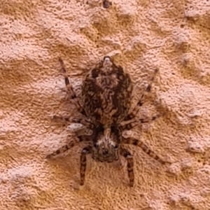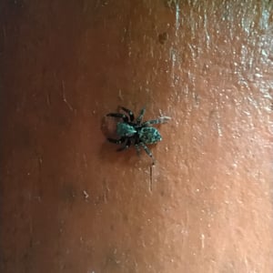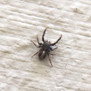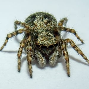 The species name (lanigera) means wool-bearing; the genus name 'looking like' (pseud) 'good' (eu) 'eyebrows' (ophrys). Euophrys ('beautiful eyebrows') is another genus from which Pseudeuophrys has been split off.