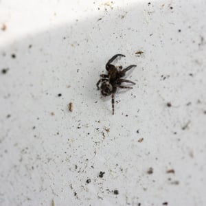 Males reach a body length of three to four millimeters, with females up to five mm. This species is very similar to Pseudeuophrys erratica, which is rarer and found below the bark of trees on forest fringes. As P. lanigera is mostly found inside buildings, adults can be found even in deep winter. It is better suited to the dry climate of modern concrete architecture than other salticids in the area like Salticus scenicus. Adults can be found the whole year.
