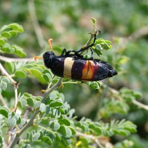 Hycleus is a small insect belonging to the family of beetles known as Scarabaeidae. It is characterized by its metallic green or blue coloration, which gives it a striking appearance. Hycleus beetles are typically found in tropical regions, where they feed on decaying organic matter. They play an important role in nutrient recycling and are often considered beneficial insects in their ecosystems.