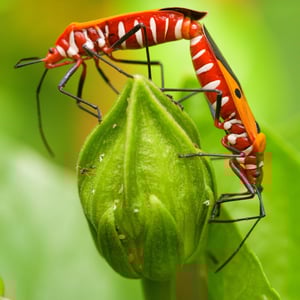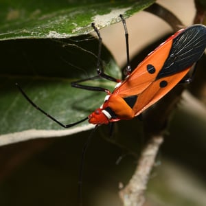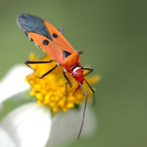 Like other true bugs, Dysdercus cingulatus sucks fluids from its host plants. The only part of the cotton plant affected by this pest is the flower and the seed capsule or boll. As this develops, the insect thrusts its rostrum between the carpels and sucks fluids from the still soft seeds inside. Micro-organisms are admitted in the process and may make the boll contents rot or the lint become discoloured. Meanwhile, the seeds wither, the fibres may fail to expand and the boll may abort. When the seeds of a host plant ripen and it becomes unsuitable, the adult insects migrate to new host plants of the same or different species. While away from their hosts, they feed on nectar and fruit of non-host plants, and can survive for several days without food. They seem fond of citrus fruits, but this may merely be because there are often citrus plantations in close proximity to cotton fields.Adult females lay several batches, each of sixty to ninety eggs, in chambers they dig in the soil. These hatch after about five days and the nymphs develop through four nymphal stages over a period of thirty to forty or more days before becoming mature.