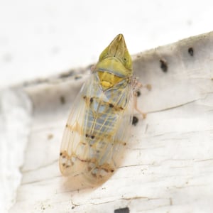 Japananus hyalinus is a small insect belonging to the family Cicadellidae. It is commonly known as the glassy-winged sharpshooter. This insect is native to Japan and has also been introduced to other parts of the world, including North America. It is characterized by its transparent wings and sharp mouthparts used for piercing and sucking plant sap.