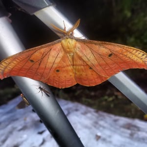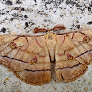 Antheraea yamamai, the Japanese silk moth or Japanese oak silkmoth (Japanese: yamamayu(ga) (山繭(蛾)・ヤママユ(ガ)) or tensan (天蚕)) is a moth of the family Saturniidae. It is endemic to east Asia, but has been imported to Europe for tussar silk production and is now found in southeastern Europe, mainly in Austria, northeastern Italy, and the Balkans. It seems to be spreading north and a population has been reported near Deggendorf and Passau in Germany. The species was first described by Félix Édouard Guérin-Méneville in 1861. It has been hybridized artificially with Antheraea polyphemus of North America. This moth has been cultivated in Japan for more than 1000 years. It produces a naturally white silk that is very strong and elastic, but does not dye well. It is now very rare and expensive. The wingspan is 110 –. Adults are on wing from August to September in one generation depending on the location. The larva mainly feed on Quercus species, but have also been reported on Fagus sylvatica, Castanea sativa, Carpinus, Rosa, and Crataegus. In order to look at the tensan silk genes in more detail a de novo genome and set of transcriptomes have been sequenced, producing a 700Mb reference with 15,481 genes.