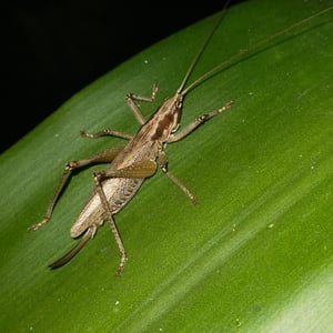 Tettigoniidae, commonly known as katydids or bush crickets, are a family of insects belonging to the order Orthoptera. They are characterized by their long, slender bodies and large hind legs, which enable them to jump and fly. Katydids are known for their ability to produce loud and distinctive mating calls using specialized structures on their wings. They are primarily herbivorous and can be found in various habitats worldwide.