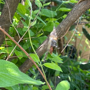 In the webs of some spiders the viscid thread turns in very few, if any, spiral turns; most of the thread is looped back and forth along the radius. This is shown in the web of Meteperia labyrinthea. A web of this kind is termed an incomplete orb. The web of the labyrinth spider is highly characteristic and is more easily recognizable than the spider itself. The web consists of both an orb web and an irregular web. The orb web is built below and in front of an irregular web, where a retreat for the spider is created. This retreat is a tangled, knotted web made with some debris and leaves woven into the silk, placed so as to make a small tent for the spider. After attaining maturity, the male makes no orb web.