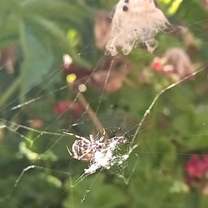 Like many other spiders, the labyrinth spider is a predator that uses the orb portion of its web to ensnare prey. It is a passive hunter that lets the web do the work. One or more trap lines extend from the retreat to the orb web. The sticky prey capture threads of orb-webs are critical to web performance. By retaining insects that strike the web, these spirally designed threads allow a spider time to locate their prey. When an insect becomes entangled in the web, the spider climbs down to reach it from the trap line and ties it up in the web. If the spider is in need of food immediately, the insect is taken back to the retreat where the soft parts of the animal are eaten and the remaining parts thrown from the web. In June 1980, a field experiment was performed in Patuxent Wildlife Research Center, Prince George's County, Maryland, to determine if food is a limiting resource for adult females of Metepeira labyrinthea. Spiders built webs after being added to open experimental units, half of which were exposed to natural prey densities, while the other spiders were given laboratory-reared flies to increase prey availability. Feeding continued like this for 2.5 months and at the end of the experiment all egg sacs were removed from the units. Additional prey did not increase the survival rate of the spiders; however, the species responded to additional prey by significantly increasing the number of eggs produced per female. Median egg production per female increased from 65 to 145 for M. labyrinthea. This indicated that food was a limited resource for this species.
