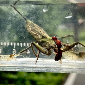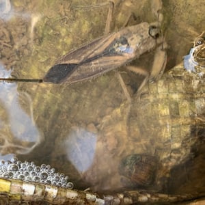 Laccotrephes grossus is a species of water bug commonly found in freshwater habitats. It is characterized by its large size, reaching up to 5 centimeters in length. This insect has a streamlined body shape and long, powerful legs adapted for swimming and capturing prey. Laccotrephes grossus is known for its predatory behavior, feeding on smaller aquatic insects and invertebrates.