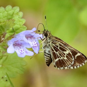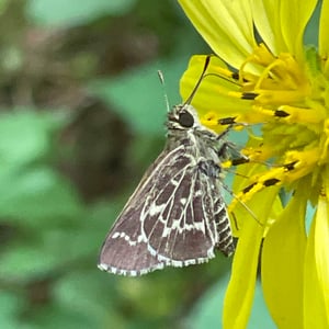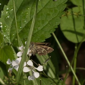 Amblyscirtes aesculapius (the lace-winged roadside skipper) is a butterfly of the family Hesperiidae. It is found from eastern Oklahoma and eastern Texas, east to south-east Virginia, south along the Atlantic Coast to northern Florida. The wingspan is 30–38 mm. Adults are on wing from March to September. There are two generations per year. The larvae probably feed on Arundinaria species. Adults feed on the nectar from various flowers, including elephant's-foot, sweet pepperbush, blackberry, white clover, selfheal and dogbane.
