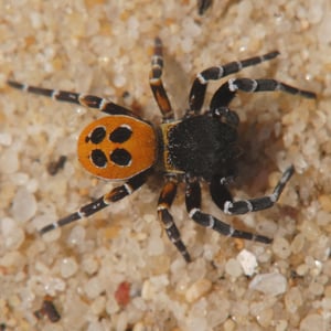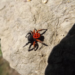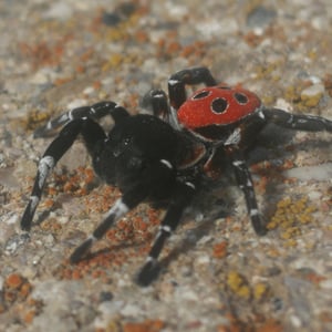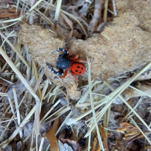 Eresus kollari, the ladybird spider, is a spider species in the family Eresidae. It is one of the three species into which Eresus cinnaberinus or Eresus niger has been divided. Eresus kollari keep the remains of their prey stacked in the web. The females use the same burrow throughout their whole life. The prey can be large like tenebrionoid beetles, up to 32.5 mm long.