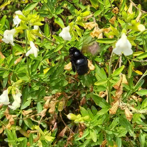 Xylocopa, commonly known as carpenter bees, are large, solitary insects belonging to the family Apidae. They are known for their robust bodies, shiny black coloration, and distinctive buzzing sound. Xylocopa species are often found in woodlands and gardens, where they construct their nests by burrowing into dead wood, hence their name.