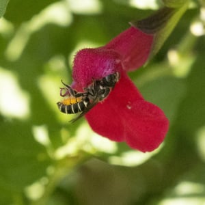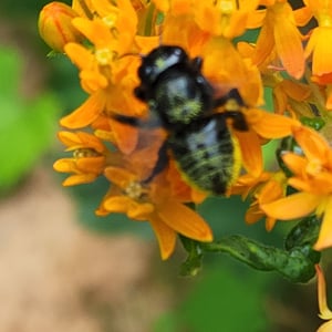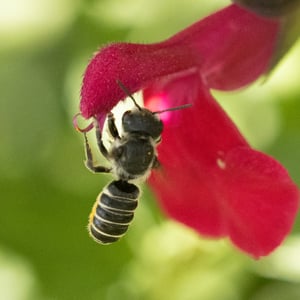Megachile is a genus of solitary bees commonly known as leafcutter bees. They are known for their distinctive behavior of cutting circular or oval pieces of leaves to construct their nests. Megachile bees are important pollinators, visiting a wide range of flowering plants. They are typically medium-sized bees with a robust body and strong jaws for leaf-cutting.